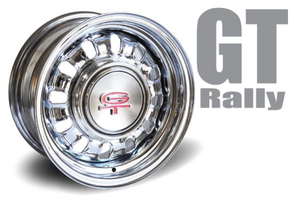 Calling all Pony cars, back by popular demand is Wheel Vintiques GT Rallye! Available in a 14″ and 15″ diameter with widths ranging from 6″-8″. The GT has a 5-4 1/2″ bolt pattern with backspaces ranging from 4″ to 4 1/2″. Available in chrome only. GT caps also available at additional cost. Finish off your Mustang right with Wheel Vintiques GT Rallye. For more information, contact Wheel Vintiques Inc. at (559) 251-6957 or inside our online store.