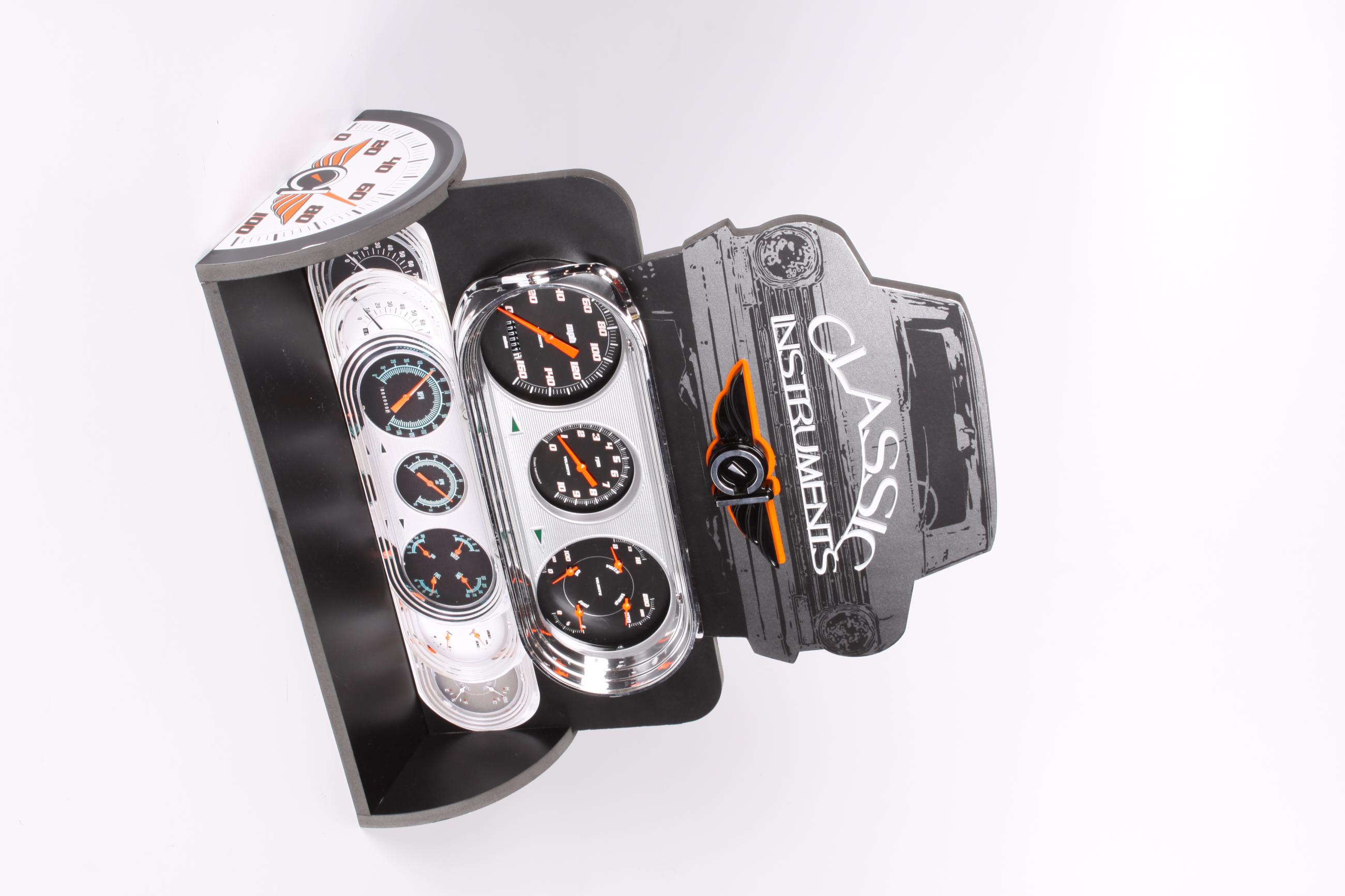 Electronic Speedometer, Tachometer, and Quad. Mounts into stock bezel. Fuel 0-30 stock ohm. Includes necessary senders, wiring harness and lens. Turn and high beam indicators.