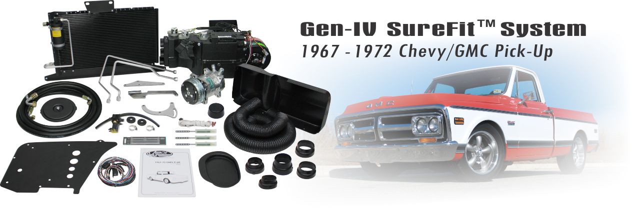 This new Chevy/GMC Pick-Up Sure Fit™ system includes our exclusive Electronic Cable Converters™ which convert existing factory controls to electronic operation. Additional features include variable blower speed and dash/floor/defrost blend. SureFit Systems™ are engineered specifically for each vehicle application and require absolutely minimal alteration to the vehicle for installation.