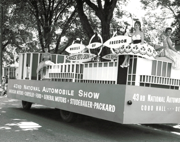 The theme of the show was "Wheels of Freedom" and this was a moment when freedom was being challenged throughout the world. Wheels have forced men from burdens and restrictions throughout history. A 60-year old tradition was broken when the Automobile Manufacturers Association decided to stage the 43rd National Automobile show in Detroit's Cobo Hall which cost 54 million dollars to construct.