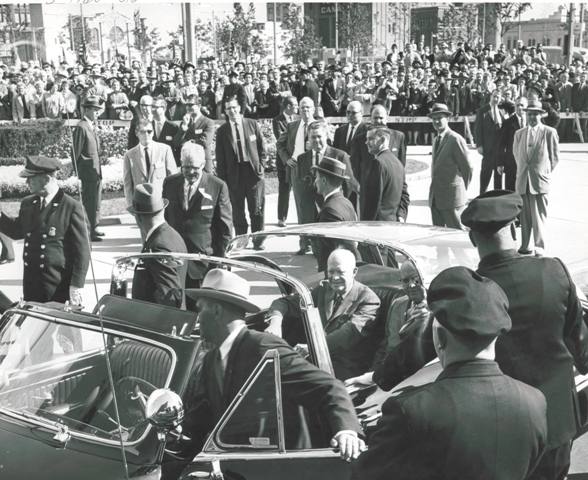 It took hundreds of the nation's major manufactures cooperated to stage the spectacular "Auto Wonderland" show within the show opening at Detroit's new Cobo Hall . Designed as an integrated "World's Fair" type of exposition, Auto Wonderland was a spectacular added attraction to the main event of the Auto Show which featured the automobiles and trucks on stage together for the first time. President Eisenhower was the honored guest and speaker at the show.