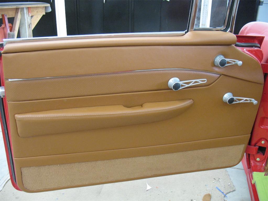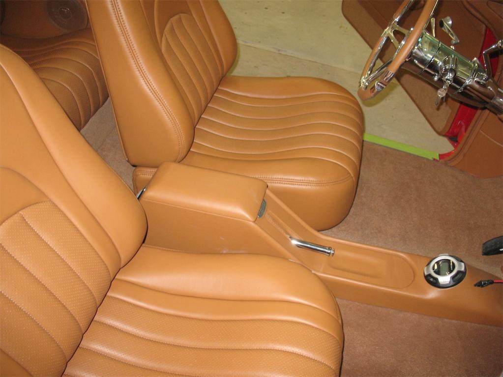 As you can see from the pictures below, Weaver and the Recovery Room staff stitched up a high quality brown leather interior – the perfect accent to the PPG Red. The bumpers are arriving this week from Ogden Chrome as well as the Intro Wheels. It will head to Scottsdale next Wednesday!