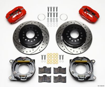 The brake kits feature Wilwood’s special internal drum parking brake design that allows a parking brake system to easily be hooked into the stock parking brake cable system, said the company. The kits can be ordered with a black finish with standard rotors or can be upgraded with red powdercoated calipers and drilled and slotted rotors.