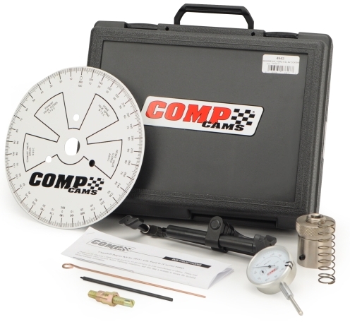 Degreeing positions the camshaft for the best performance for your engine, so you get the most horsepower and torque possible out of your application. These COMP® degree kits contain everything required to degree a camshaft while the cylinder heads are on the engine. They come with a degree wheel, wire degree wheel pointer, cam checking fixture with metric adapter, 1" travel dial indicator, 5" dial indicator extension, crankshaft socket, TDC piston stop and instructions. All pieces are stored securely in the included hardcover, foam-padded plastic case.