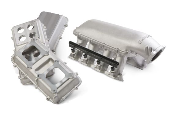 The base is a modular design that will accept a wide range of carbureted and EFI tops. The four tops available for the system are a forward-mount throttle body style, a dual 4150, a dual 4500, and a blank top that can be machined for any induction style.