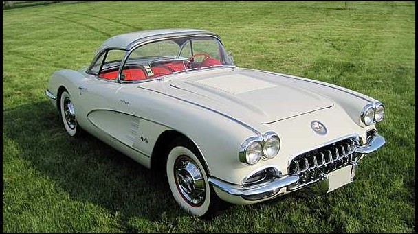 In 1958 Corvette went to a slightly larger body style and incorporated a simulated louvered hood and additional chrome - more chrome in fact than any previous year. 1958 was also the second year Corvette was available with optional Rochester fuel injection.