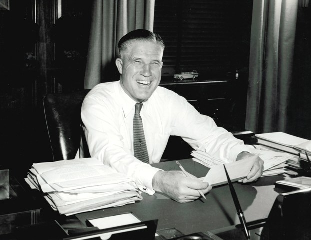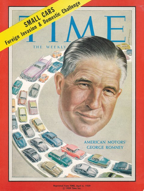 As a youngster, George Romney moved with his family throughout the southwest and went to England as a young Mormon missionary. In 1939, he became a local manager for the Automobile Manufacturers Association in Detroit. In 1948, Romney joined Nash-Kelvinator Corporation as assistant to the President and soon became Executive Vice President in 1953. Romney served as President to American Motors from1956-1958. He took the corporation from a money-losing operation into prosperity. He also was a strong advocate for smaller compact cars.