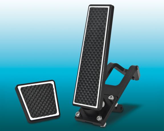 The company offers two finish choices: brushed aluminum or black anodized. An optional billet aluminum brake pad (shown here) is also available.