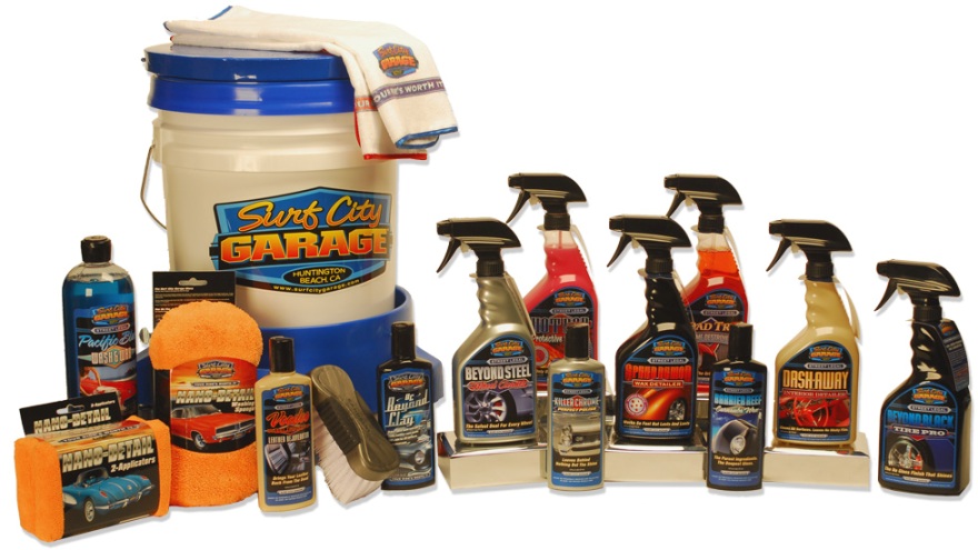 Everything you need to detail your ride to perfection like a pro, inside and out, from cleaning and polishing to sealing to waxing and from tires & wheels to leather & vinyl interiors. Includes Grit Guard, Deluxe Interior Brush, Applicator Pads, Nano-Detail Signature Towels, Nano-Detail Washing Sponge, Pacific Blue Wash & Wax (32oz), Hot Rod Protective Detailer (24oz spray), Speed Demon Wax Detailer (24oz spray), Dash Away Interior Detailer (24oz spray), Road Trip Grime Destroyer (24oz spray), Beyond Steel Wheel Cleaner (24oz spray), Beyond Black Tire Pro (24oz spray), Voodoo Blend Leather Rejuvenator (8oz), Killer Chrome Perfect Polish (8oz and works great on aluminum and stainless, too), Barrier Reef Carnauba Wax (8oz), and Beyond Clay (8oz).