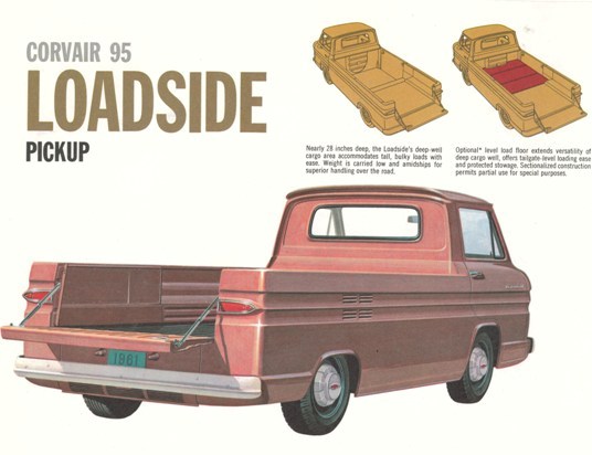 The Loadside models, which were only produced for two years, were a pickup truck version of the Corvair. The Loadside model is considered as the rarest Corvair trucks for only 369 models were produced.