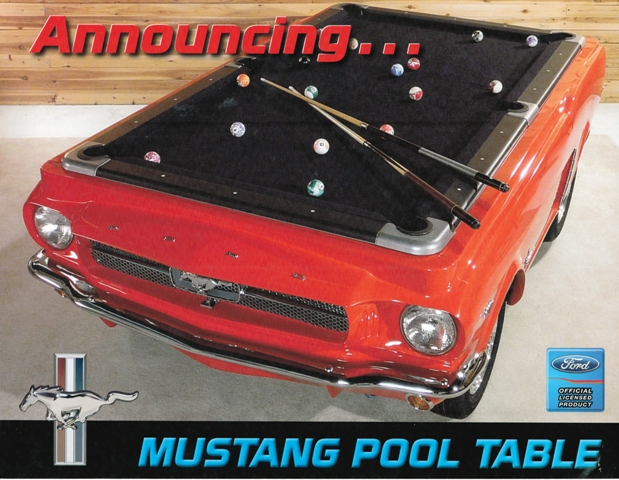 Lastly, the 1965 Ford Mustang pool table is for the prestige collector. It includes a solid fiberglass body with high quality auto paint and clear job with chrome bumpers and decals. The starting price for the Mustang pool table is $9,995. On October 10th, 2010, Mustang Entertainment took things a step further and introduced the 1965 Shelby GT-350 Pool Table, each table being hand signed by Carroll Shelby himself.