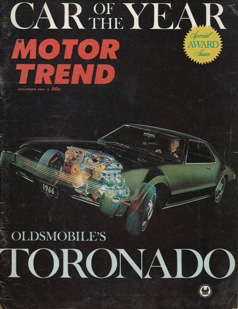 This strategy was successful. In1966, Toronado was in its first full year of production, which placed Oldsmobile sales fifth in the automotive industry. The press and public praised the Toronado, winning Motor Trend's coveted "Car of the Year" award along with many other accolades. The 1966 Oldsmobile Toronado is a perfect example of what the automotive industry was aiming to accomplish in the 1960s, combine new style and innovative performance in order to appeal to a young mass audience of Baby Boomers.