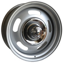 18" Steel Rally - Hot off the line is Wheel Vintiques new 18" Steel Rally, yes you heard right an 18" Steel Rally! Awesome right? The 18" diameter Rally is available in 7" and 8" widths with a variety of standard and custom backspaces. Don't forget about caps, Wheel Vintiques has many of the popular styles available such as derby, police, disc brake, and even truck caps. Trim rings will be available soon. Wheels come bare steel, but you can also have them chromed or powder coated for an additional cost. Bolt patterns for both Chevy and Ford also available. Get a set for your muscle car, or pickup today!