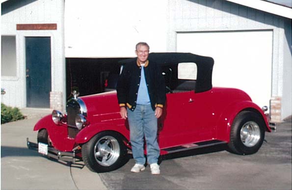 Vince Burgos, one of the original founding club members stands next to his '29 roadster which won the Gold Medal at the '66 Grand National Roadster Show in Oakland. After Burgos suffered a stroke in 1994 his wife Rose put the car back together for him.