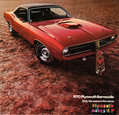 For 1970, Plymouth Barracuda models were redesign by Mr. John E. Herlitz at the Chrysler Corporation. The E-body designs were designed to bring competition for many racing fans. Some Cuda models were available with a 340 V-8 engine that were popular to both the average consumer and race track drivers. A total of 18,880 models were built in various forms including all of the engine and performance combinations. The most popular Cuda models were the models that offered the 426 Hemi engines or the AAR Cuda models that were produced with a 340 "Six Pack" three two-barrel carburetors type engine. The graphic design on the rear quarter panels were sometimes called the “inverted hockey stick" which consumers loved. There were only 635 Cuda convertible models built, and to date, these models could cost over a million dollars.