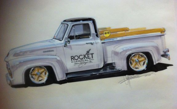 The first project vehicle will be a 1953 Ford F-100 pickup truck that will be designed to look similar to the truck that was used to deliver the first case of WD-40 Multi-Use Product in the early 1950s, back when the company was known as Rocket Chemical Co. The truck, which will be given an updated drivetrain, suspension, wheels, tires and paint, will make its debut at the 2012 SEMA Show. Afterward, the truck will tour West Coast auto shows and events before being auctioned off at the Barrett-Jackson Collector Car Auction. The truck’s sale will benefit two SEMA Cares charities—Childhelp, which aids abused and neglected children, and Victory Junction, which provides camping experiences to special needs and chronically ill children.