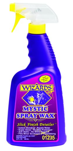 Mystic Spray Wax can be used on all paint types and provides a slick gloss finish. The spray is designed to eliminate hazing and white filmy residues. It can be used on any hard surface, including glass, chrome, polycarbonate, fiberglass, gel coat, plastics and rubber trim.