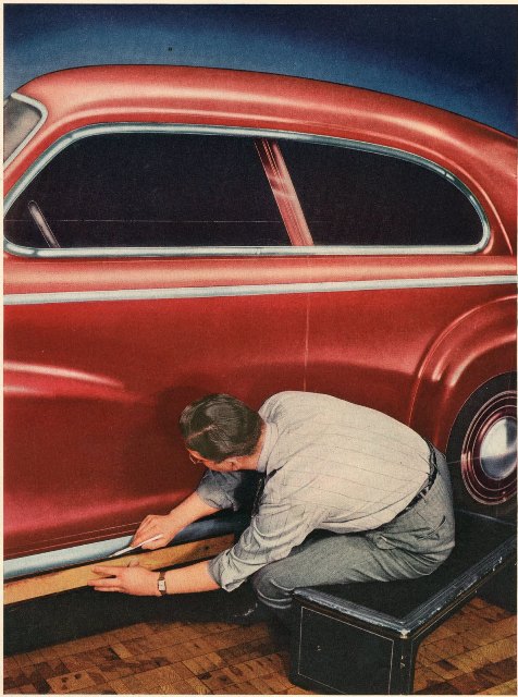 By 1940, Mr. Ray Dietrich left Chrysler and Mr. Robert Cadwallader took over as Chryslers Chief Exterior of Design. From 1942-1948, Mr. Cadwallader generated design concepts for Chrysler and many of these were created as full sized models built of clay, wood, and steel. Some of the creative ideas that were developed had to do with the power plant of the car or its useful length of the vehicle.