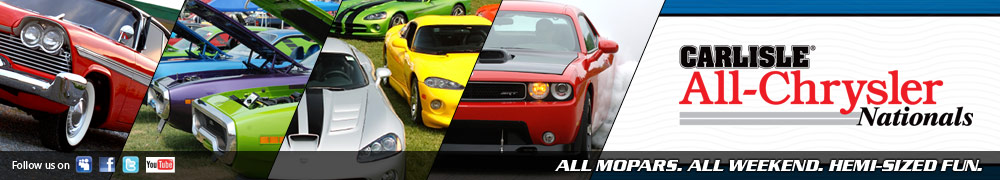 Welcome to a true Mopar-lover’s paradise. There’s nothing quite like it anywhere in the world with over 2,100 vehicles from all eras of the Chrysler brand, classics, muscle cars, high-performance new models all converge on Carlisle for a one of a kind weekend. You need to be here for the enormous showfield that is organized by year, make and model, special indoor displays, activities for the kids, industry guests, special prizes and NHRA drag racing. Interested in parts buying? Look no further! You’ll be amazed at the size of the swap meet, the variety of vendors, the car corral, and the Manufacturers Midway. Whether you prefer the A, B or E body style – this show has it all! Registration is available online or by calling our office at (717) 243-7855. Please note: refunds will not be issued less than 19 days prior to the beginning of the event and winners' lists are subject to change.