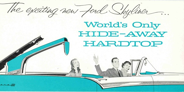 The Ford 500 Skyliner models were first introduced at automotive shows located in Detroit, Michigan and New York. The name “Skyliner” was first used by Ford on their 1954 transparent topped-Victoria models. The 1957 Ford Skyliner was a steel hardtop that was capable of changing into an open convertible by the touch of one button. An automatic folding mechanism retracted its top into the rear deck making it one fascinating feature to see while in progress.