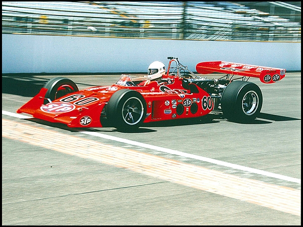Wally Dallenbach took over the car for the remainder of the season, winning from pole position at Wisconsin and again in the California 500 at Ontario. The car was sold to Dick Beith and became the Kid’s Racer for 1974, driven by Bill Simpson. George Follmer also drove the car, which was last driven by Billy Scott before it was retired after the 1978 season.