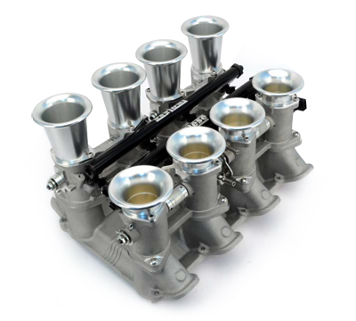 Two versions are available, one for LS1-style cathedral port heads and one for LS3/L92-style heads, and are sold as either a single manifold or a fully assembled system. The LS 8-Stack Induction Systems also work with Inglese™ IDA carburetors, and a complete linkage kit is available.