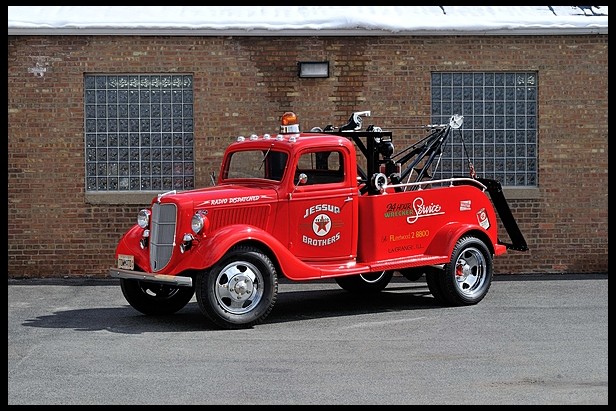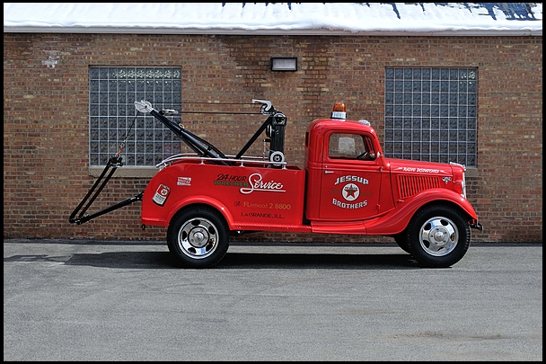 Interior materials and finishing reflect the excellent overall quality of this nostalgic rig, most noticeably in the vintage switchgear and controls and the original factory gauges, all of which have been rebuilt and are in perfect working order. In fact, 95 percent of the original hardware has been retained after having been replated in the correct respective finishes. The truck’s exterior finish is an evocative mixture of fire-engine Red paint, chromed wheels and body trim and nostalgic Depression-era signage, hand painted by renowned artist, sign painter and font creator Bob Behounek, announcing that the truck is the property of “Jessup Brothers Texaco.” Powered by Ford’s legendary flathead V-8 engine, this whimsical artifact was named to the 2009 Chicago World of Wheels’ prestigious Top 20.