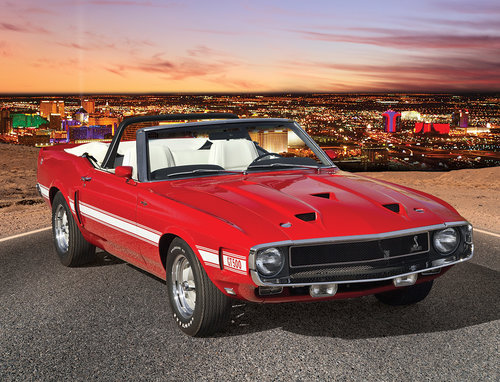 Finished in Red with a White interior, this 1969 Shelby GT500 Convertible is very rare as one of only 335 examples produced. It is powered by the "R" code 428 Cobra Jet motor and comes complete with a host of very desirable options including a power convertible top, C6 automatic transmission, tilt-away steering column, GT equipment group, power front disc brakes, AM/FM stereo, Deluxe Belts, warning lights and full instrumentation including tachometer and clock.