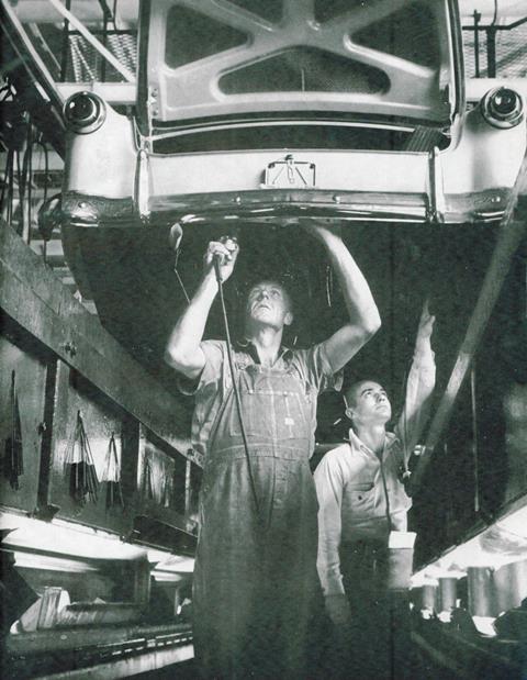 Although Ford Motor Company was famous for its highly mechanized production, the experienced fashioned craftsmen always had an important place in the company. Their skill of labor of handling wood and metal parts for specialized jobs still offered features that machines couldn’t quite handle. The book highlights the Rouge factory story which began as a manufacturing operation plant with 1,212 acres of converting ore into steel and then steel into automobiles, among many other manufacturing processes as well. At the time, 60,000 people were employed at the Rouge and the factory was known as the largest private industry.