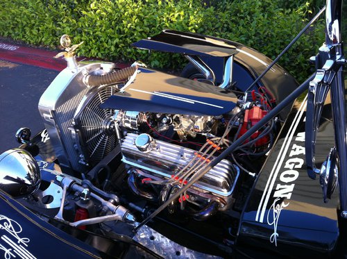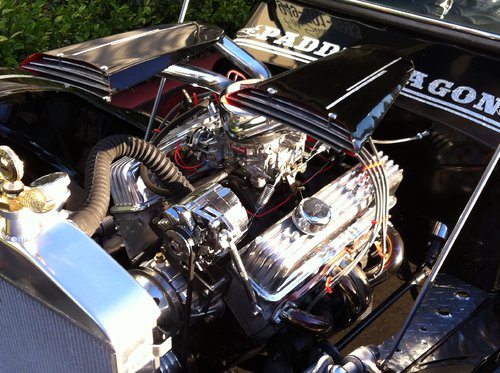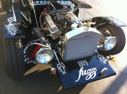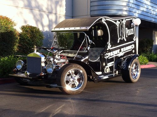 This C-cab is a tribute car to the Monagram model of the PADDY WAGON from the seventies, we all remember as a kid building on the dining room table .Hoping one day when we got older we could drive it down main street for all to see ! Heres you're chance to do just that. Everywhere it goes attracts a crowd, " its a one car car show" . This unique hot rod was built for show as well as go.Load up the kids and head down PCH or off to the local rod run its sure to turn heads and deliver plenty of smiles. Its body is fabricated from real wood with steel reinforcements as well as the steel fenders and running boards true to the era. Its running gear consists of 89 corvette suspension four wheel independent suspension and disc brakes ,It has a 350cubic inch alumn head engine, with a 700 r4 automatic trans. 16 and 17 inch crager alumn wheels,kustom button tuck interior , cd-player, kustom air cleaners, shorty headers, finned alumn vale covers, edelbrock intake, and carb. alumn pulleys,chrome alt,replica ford head lites, racing fuel cell elect fuel pump,chrome tilt steering and a griffin alumn radiator.