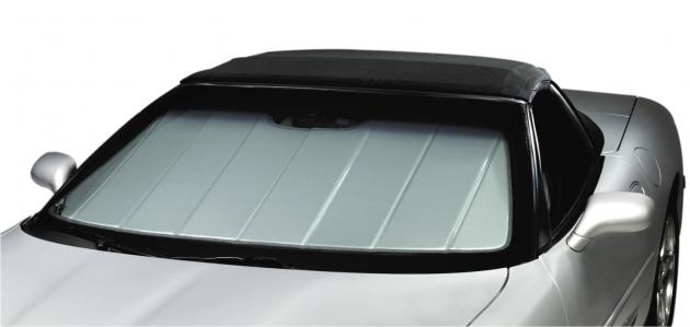 Summer will be here soon and with it the scorching temperatures that make the inside of your car or truck feel like an oven. Help beat the heat with a UVS100® Custom Sunscreen from Covercraft. This premium quality, custom patterned folding heat shield has a silver reflective fabric on the outer side, soft felt on the inside. Both fabrics are laminated to a foam core board which acts as an insulator. The silver outside-facing fabric helps reflect damaging UV rays that not only heat the inside of your vehicle but also can damage the interior.