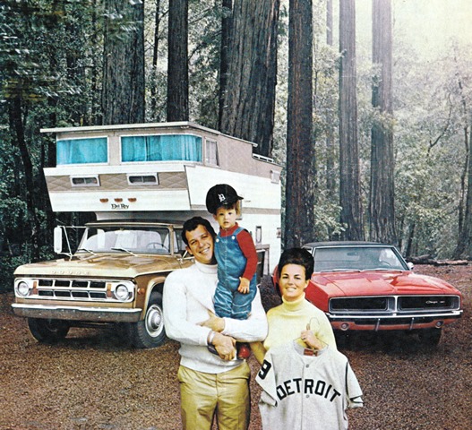 One of the greatest advertising camping campaigns in 1969, was when the Chrysler Corporation introduced “ World Series” baseball star Mickey Lolich and his family on a 10- day camping tour of America. This popular advertising campaign was centered around the Lolich family dream vacation trip. This also introduced the new 1969 Dodge model along with the new more innovative camping equipment. After winning the “World Series”, Lolich and his family started a trip across America with his wife Joyce and at the time his three year old daughter Kim. During the tour, the Lolich family used several new camping vehicles such as a Dodge motor home, the Airstream 25-foot trade-wind travel trailer, and many other camping vehicles. In 1969, this was a stand-out marketing strategy that attracted many baseball fans .