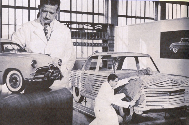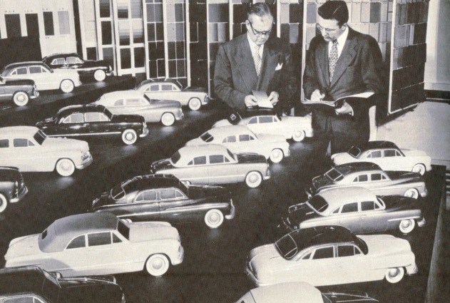 During the developmental stages of the 1949 Ford models, men and women were involved with interior designing, working with thousands of upholstered fabric pattern samples to bring new ideas to life. Engineers and designers also evaluated many scale models of miniature cars in all different colors in order to make the right choice for these special production models. Finally, after many months and thousands of ideas were considered, full-size clay models were produced for the top executives including the Ford family members to vote on. They would decide on every individual feature until the selective model would become chosen for manufacturing and production.