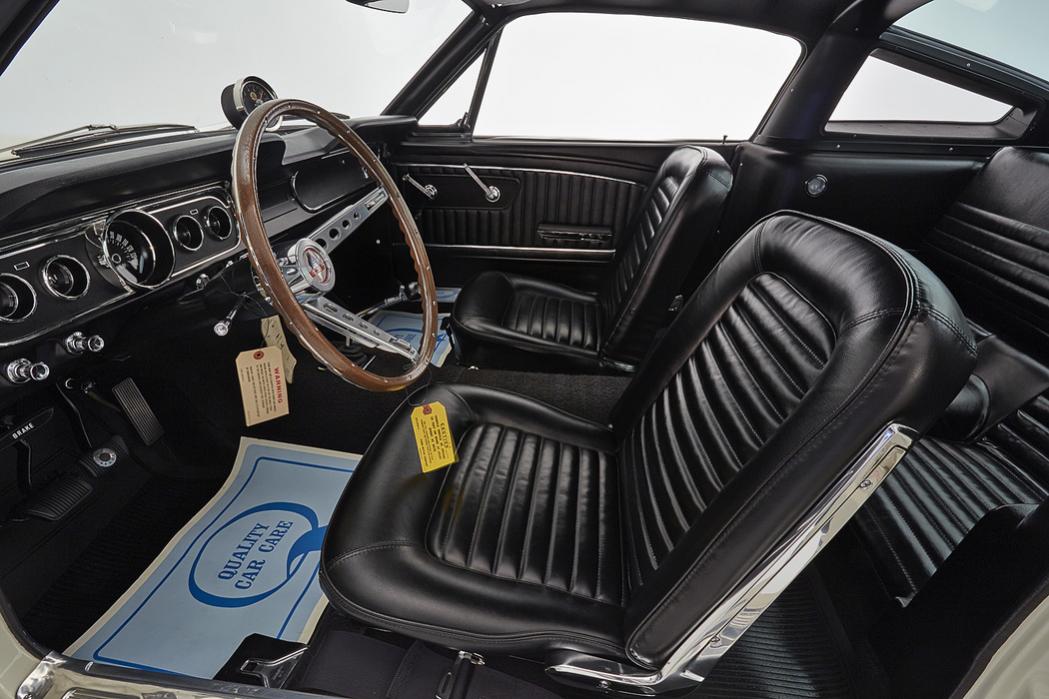 The Shelby retains its complete, matching numbers drivetrain; including the aluminum-case T-10 four-speed, and the engine, transmission, and rear end were completely inspected and refreshed to factory specifications during the restoration. Only the original and first-design, date-coded NOS parts were utilized in the restoration, which were located and collected over a 12-year timeframe, including entire NOS front suspension, full NOS 1965-dated exhaust system, correct assembly-line battery, restored Cragar wheels retaining the original outer rims, four excellent original Goodyear Blue Dot tires, and an NOS spare. In fact, well over $100,000 was spent on NOS parts alone. All parts, fasteners, and hardware feature correct finishes, consistent with original specifications. Extensive detailing of the car included the careful duplication of all original inspection marks, part identifiers, paint codes, and more. Further setting this outstanding GT350 apart from the rest, it is devoid of the usual “LeMans” stripes seen on the majority of other examples of the breed.