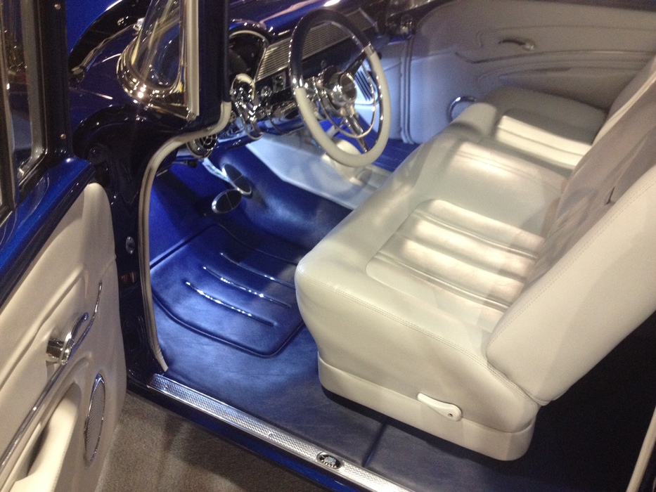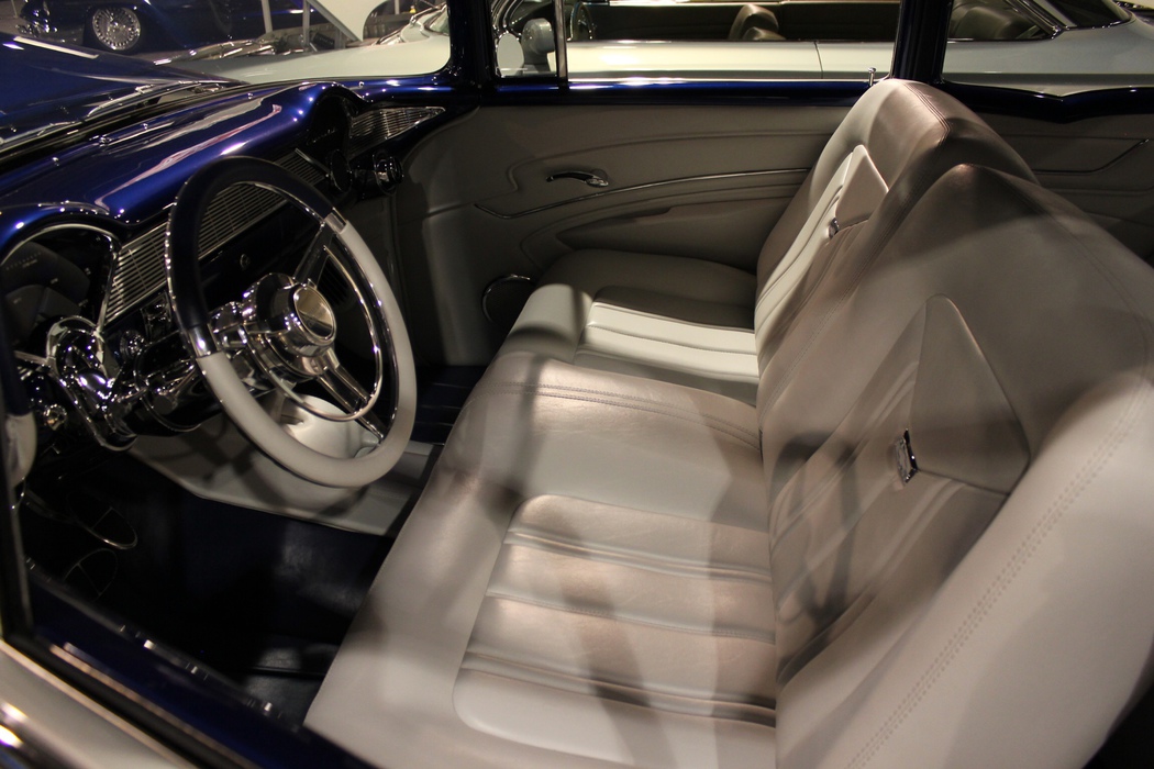 Based on a 1956 Chevrolet 210 Sedan, this recently completed mild custom was built to showcase the timeless factory “Tri-Five” heritage. With a new GM Performance ZZ4 power plant backed by a factory-fresh GM 700R4 transmission, it is equipped with rack-and-pinion steering, four-wheel Wilwood disc brakes, Currie 9″ rear end, and Air Ride suspension, and it was built to be driven as well as shown. Once its award-winning blue and silver paint grab your attention, you will notice the full custom engine compartment, miles of custom hidden wiring, gleaming undercarriage, interior by Armando’s Upholstery, and the great attention to detail that has been applied to all areas of this outstanding 1956 Chevrolet 210 Sedan.