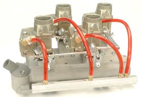 When three carbs are just not enough, Barry Grant’s Triple D Induction responds with two new Demon 98 Four Deuce intake packages for the small-block Chevy. One features red fuel hoses and a chrome fuel block, and the other offers billet fuelrails.