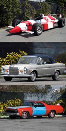 The unmistakable 1973 Chevrolet El Camino (Lot W222) that played an omnipresent role in the NBC hit television series "My Name is Earl" will also go up for sale. Featuring red paint with a borrowed blue driver's door and primered hood, this El Camino is a genuine 454 automatic/air vehicle that has been maintained in peak running order. And fans of the recent blockbuster "The Hangover" will instantly recognize the 1969 Mercedes-Benz Cabriolet (Lot T261) developed as one of two "beauty" cars for the makers of this summer comedy. While it wasn't subjected to an endless stream of abuse like the film's actors, this Mercedes does enjoy the distinction of having taken Mike Tyson's pet tiger for a ride. It is scheduled to go up for bid Thursday, May 20, at 8:25 p.m.