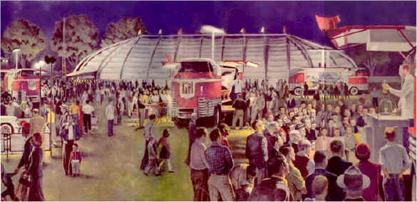 A picture of this painting was used for the cover of the 1953 GM Annual Report. The painting was commissioned by artist John Falter in 1953. He was asked to go out to a Parade of Progress event and capture on canvas the essence of the event.
