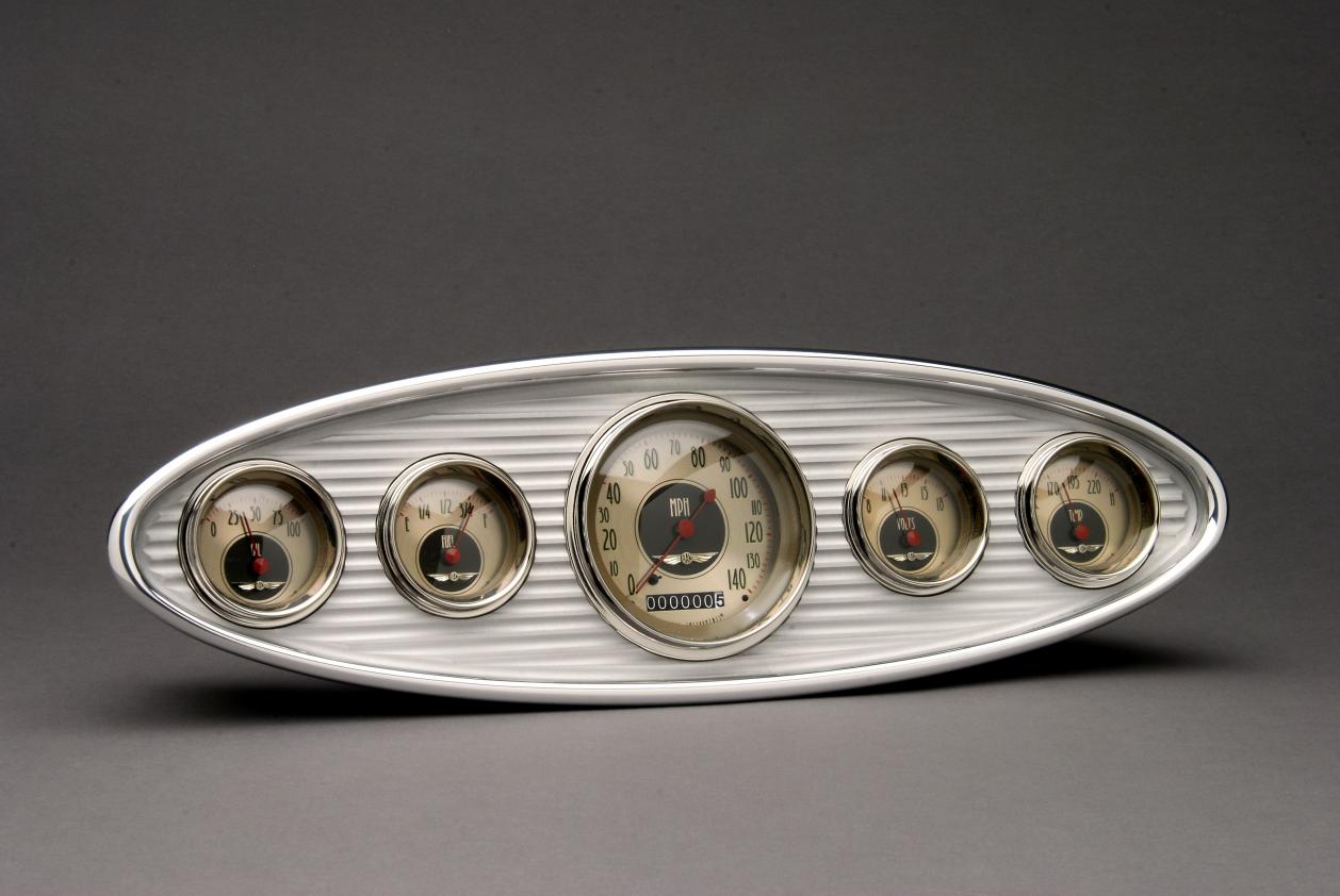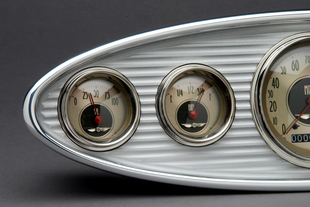 It is also machined so that your gauges will be recessed in to the panel and come standard for Classic Instruments gauges. However the panel can be ordered to accept Stewart Warner, Auto-Meter and Dolphin Gauges. The over all size is 5'' high By 16 1/2'' Long. You must purchase the gauges SEPARATELY they are not included.