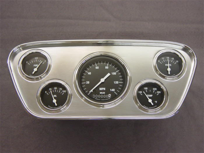 It also has a ¼ wide radius around the outer edge of the panel. They accept auto meter street rod series gauges or classic instruments gauges and come with all hardware needed to install.
