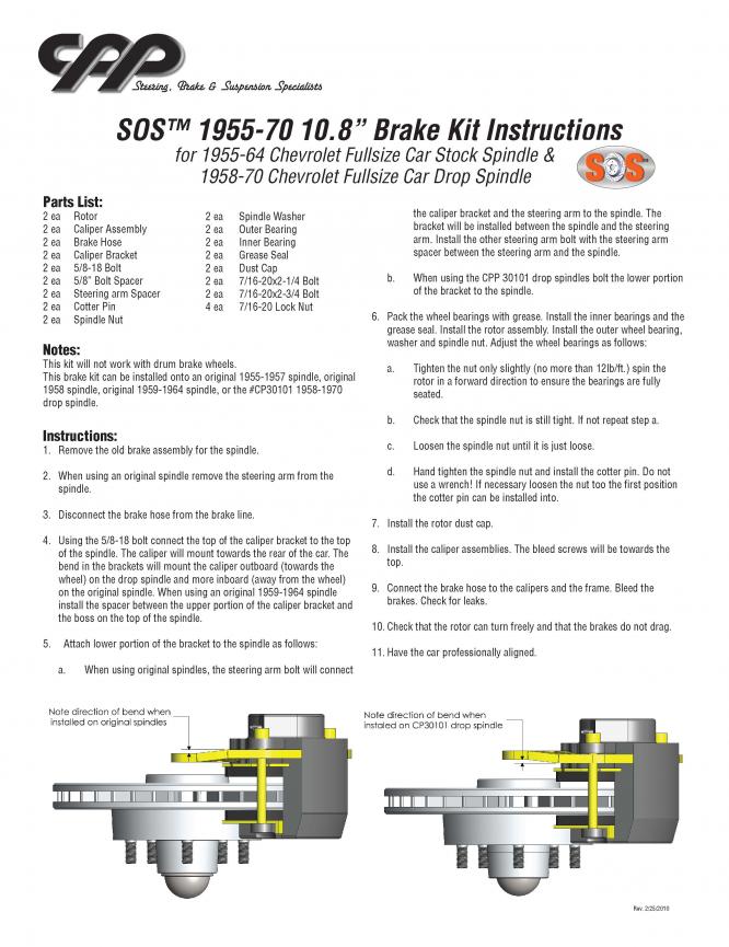 Also, to use this kit 1969-70 models require 1965-68 spindles, part #6568SP.*shown with optional drilled & slotted rotorsRead the complete installation instructions here