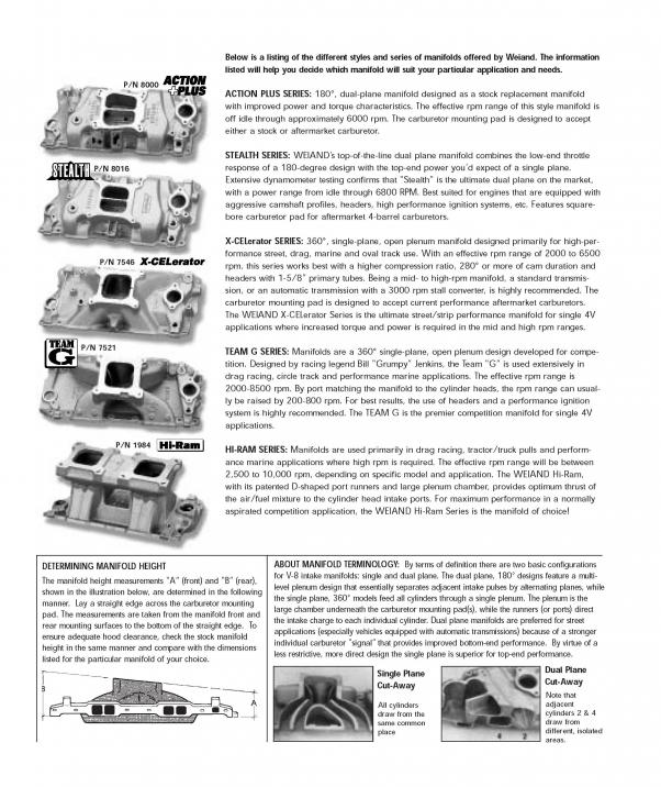Below is a listing of the different styles and series of manifolds offered by Weiand. The information listed will help you decide which manifold will suit your particular application and needs.