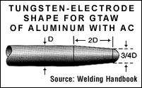 Tungsten types: For aluminum GTA-welding, pure tungsten has been the traditional electrode choice because of its low cost and availability in ground condition. But for improved current-carrying capacity and to minimize tungsten transfer across the arc, zirconiated tungstens work best. Ceriated and lanthanated tungsten electrodes perform similar to zirconiated electrodes, with improved DC operation.